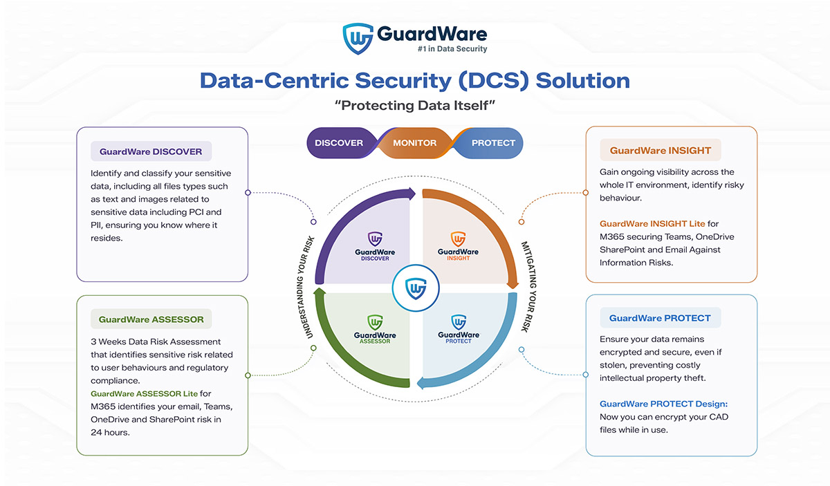 GuardWare is a data-centric security platform that binds encryption and usage policy to the information itself. It discovers and classifies sensitive data across IT/OT, monitors how it moves internally and with suppliers, and enforces persistent protection—at rest, in transit, and while in use. Teams can grant, limit, or revoke access on demand, automate hardened baselines, and generate tamper-evident evidence for audits and board reporting. The result: provable control of critical information, even outside your perimeter.