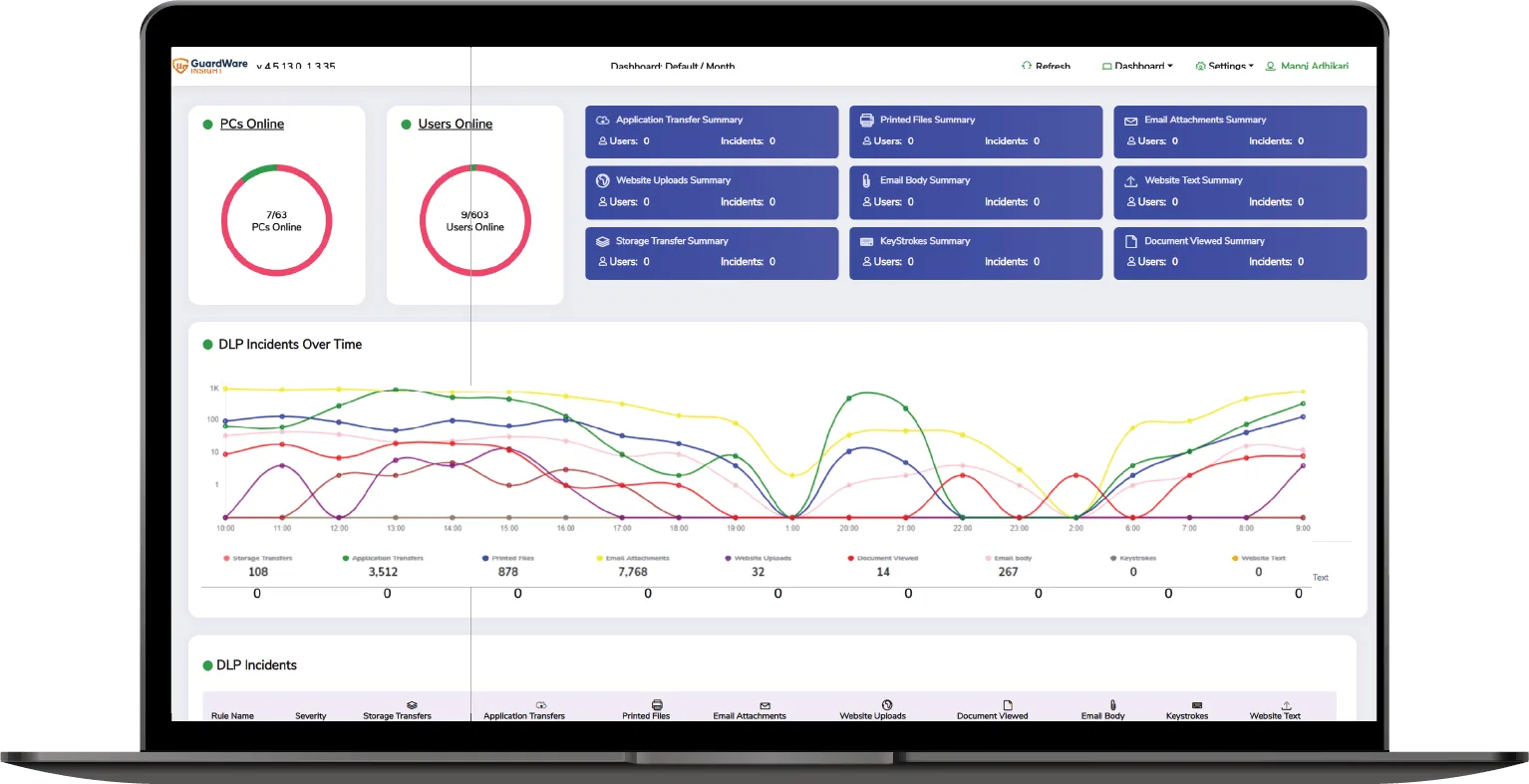 GuardWare Insight is the live telemetry and analytics layer that turns discovery data into operational awareness. It continuously tracks how sensitive files are accessed and moved, detects abnormal behaviour and policy drift, and surfaces the “so what” in clear dashboards and alerts. Insight plugs into your SIEM/SOAR and ticketing tools so the right team sees the right signal—fast—and action is captured for assurance and audits.